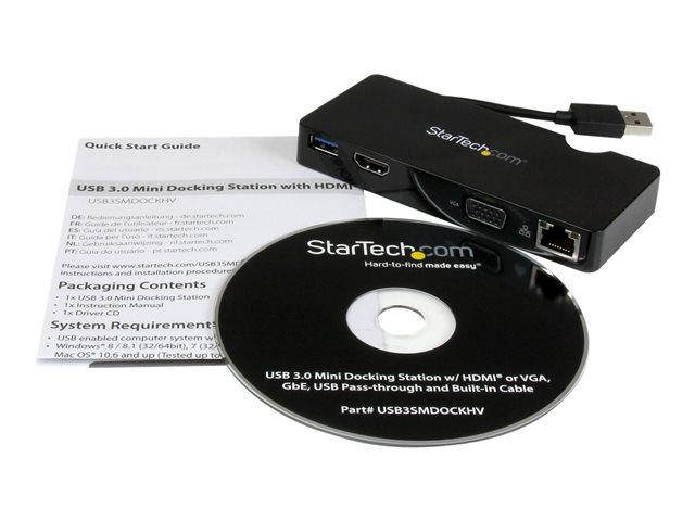 Mini station d'accueil USB 3.0 universelle pour ordinateur portable avec HDMI ou VGA, Gigabit Ethernet, USB 3.0 (USB3SMDOCKHV).