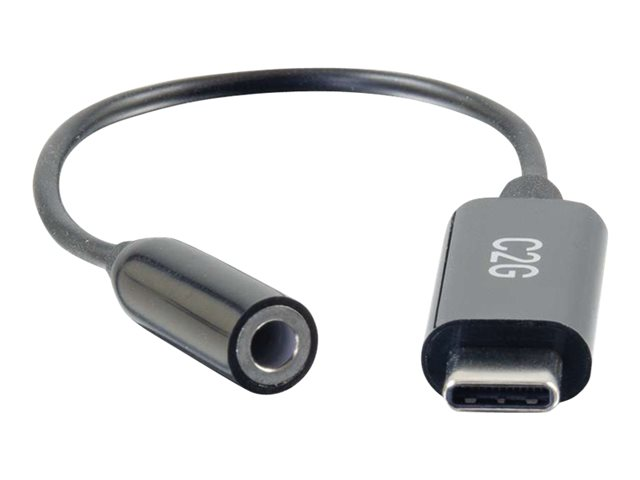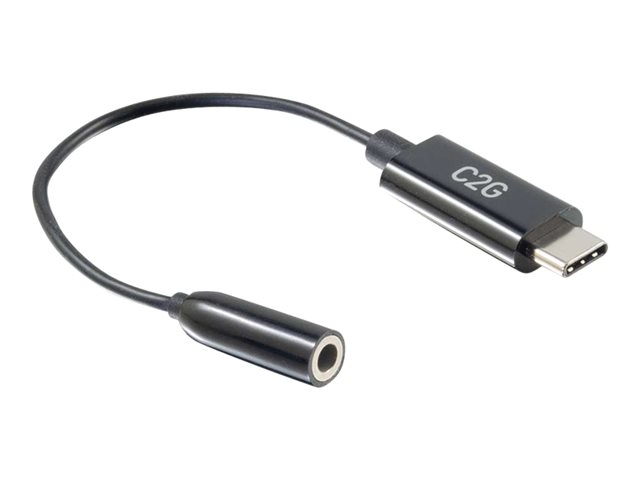 Description du produit C2G USB C to 3.5mm Audio Adapter - USB C to AUX Cable - USB C to Headphone Jack - USB-C vers adaptateur de prise casque Câble USB-C vers adaptateur de prise casque Connecteur 24 pin USB-C - mâle Connecteur (deuxième extrémité) Mini-phone stereo 3.5 mm - femelle -