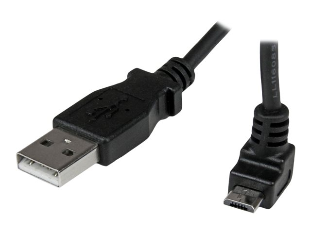 A vers Micro B coudé 90° vers le haut - Câble USB Micro B Angle Coude vers le haut - Noir 2m - Câble USB - Micro-USB de type B (M) pour USB (M) - USB 2.0 - 2 m - connecteur à 90°, moulé - noir