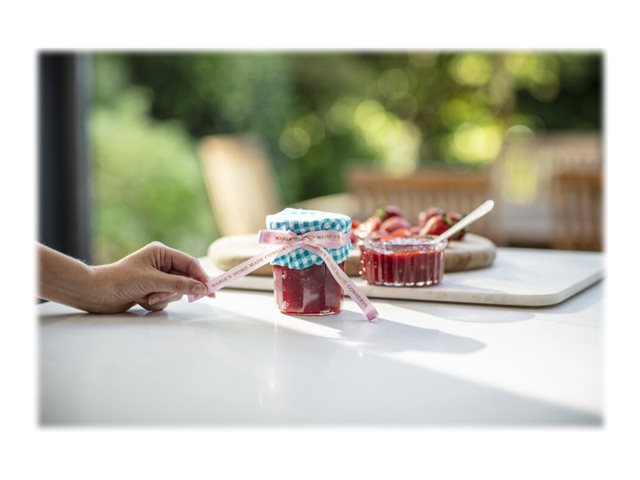 Lors d'occasions spéciales, utilisez le ruban TZe-RE34 avec votre étiqueteuse P-touch pour adresser vos meilleurs vœux aux personnes qui vous sont chères. Laissez libre cours à vos talents et personnalisez vos cadeaux, vos cartes et vos créations avec le ruban tissu TZe-RE34 Brother original.
