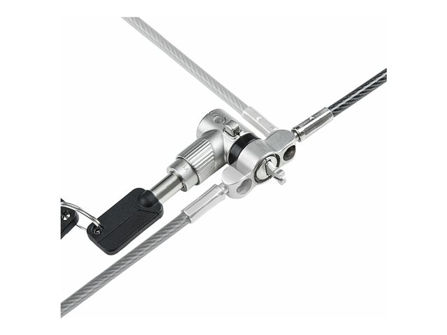 Dissuadez le vol d'un ordinateur portable, d'une station d'accueil ou d'autres périphériques à l'aide de ce verrou de câble de sécurité universel. Le verrou universel pour ordinateur portable est une solution polyvalente compatible avec Noble Wedge, K-Slot (T-Bar) ou Nano, offrant flexibilité et commodité. Sa fonction de réglage à la volée de la pointe de verrouillage permet une compatibilité sans effort avec les différents types de fentes de sécurité. Le câble de sécurité en acier résistant aux coupures mesure 2 m de long et 4,4 mm d'épaisseur, ce qui lui confère portée et durabilité. Avec le verrou pour ordinateur portable 3-en-1, protégez vos précieux appareils où que vous alliez.