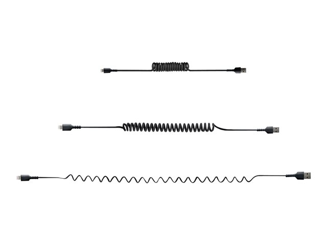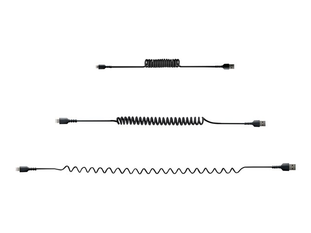 Certifié Mfi - Adaptateur USB Lightning Noir, Gaine en TPE - Cordon Chargeur Iphone/Lightning Spiralé en Fibre Aramide Très Résistant (RUSB2ALT50CMBC) - Câble Lightning - USB mâle pour Lightning mâle - 50 cm - noir - bobiné