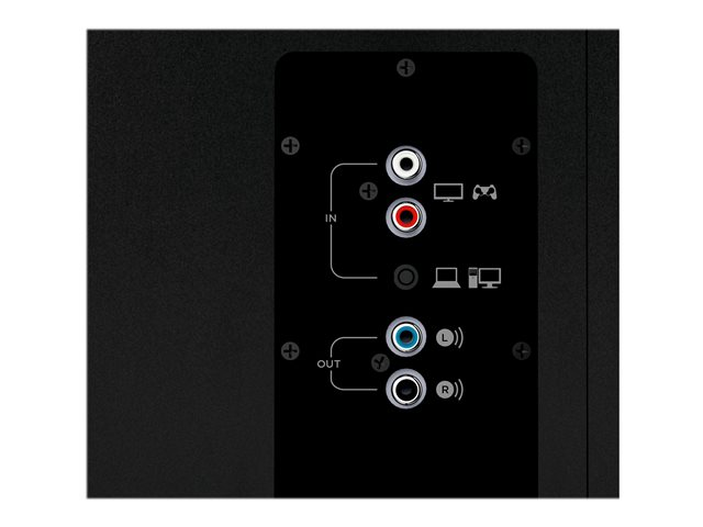 Ce système de haut-parleurs 2.1 avec une puissance de crête de 120 watts et une puissance RMS de 60 watts offre des graves dynamiques grâce à son caisson de basses orienté vers l'avant. Vous pouvez connecter jusqu'à trois dispositifs compatibles via les entrées 3,5 mm et RCA. Accédez à toutes les commandes depuis le boîtier de commande intégré.