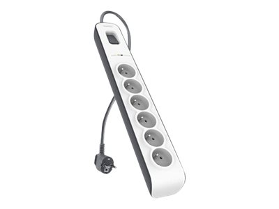 Description du produit Belkin 6 Outlet Power Surge Protector - protection contre les surtensions Type de périphérique Protection contre les surtensions - externe Connecteurs de sortie 6 x alimentation (anti-surtensions) -