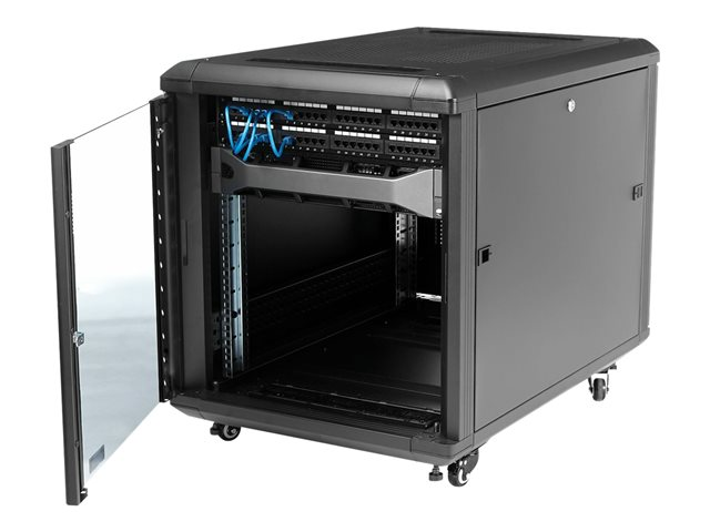 Ce rack de serveur fournit un espace de stockage de 12 unités de rack (12U) dans une armoire sécurisée et élégante, pour le stockage d'appareils 19" montables en rack, conformes à la norme EIA-310, tels que les serveurs Dell, HP et IBM ainsi que des équipements de télécommunication et audio/vidéo. Le rack constitue une solide solution de stockage qui prend en charge une capacité de charge totale de 800 kg .