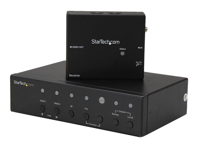 Cet extendeur HDBaseT intègre un commutateur convertisseur. Vous pouvez ainsi connecter deux sources HDMI ainsi qu'une source vidéo VGA et DisplayPort au même écran HDMI à distance sans recourir à des adaptateurs ou scalers supplémentaires ou à un commutateur vidéo séparé.