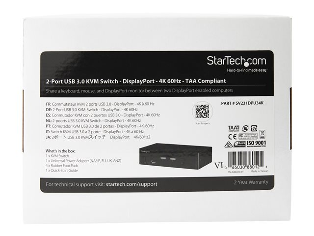 Commutateur KVM DP 1.2 avec hub USB 3.0 (SV231DPU34K) - Commutateur écran-clavier-souris/audio/USB - 2 x KVM / audio / USB - de bureau - Conformité TAA