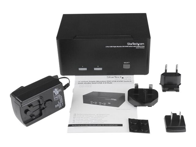 StarTech.com Switch commutateur KVM triple affichage DVI à 2 ports avec audio et hub USB 2.0